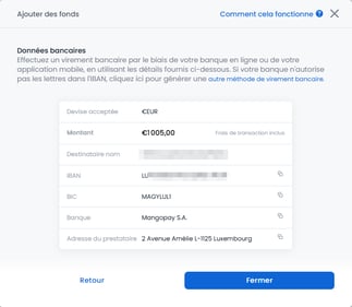 L’IBAN vous permet d’ajouter des fonds par virement bancaire.
