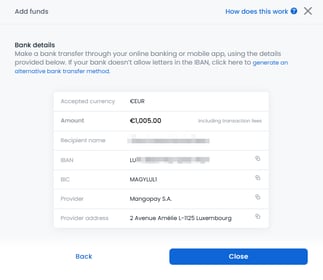 When you create an ANote Music account, you will be provided with a personalised IBAN (bank account) under your name.